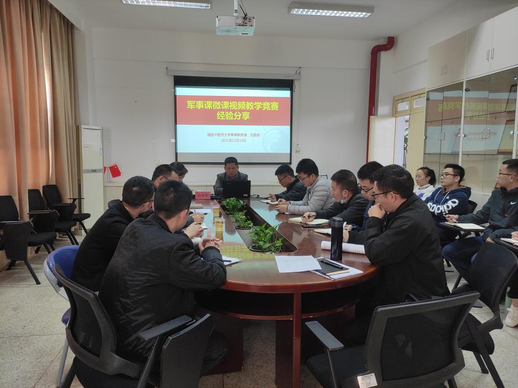為進一步提升我校軍事理論教研室教師的教學水平,2021年12月14日,我校特邀福建中醫(yī)藥大學軍事教研室沈國俊副教授為大家作題為《軍事課微課視頻教學競賽經(jīng)驗分享》專題講座。講座由馬克思主義學院副院長來朋珍主持,馬克思主義學院全體專兼課教師參加。