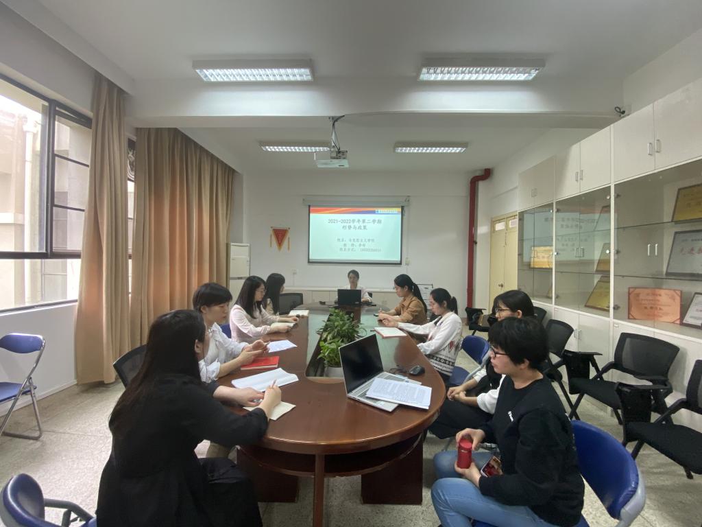 為認(rèn)真落實(shí)馬克思主義學(xué)院教學(xué)安排,進(jìn)一步引導(dǎo)青年教師堅(jiān)定理想信念、厚植愛國情懷、涵養(yǎng)高尚師德、提高教學(xué)能力、提升育人能力,2022年5月26日,馬克思主義學(xué)院開展《形勢與政策》課任課教師試講活動暨師德師風(fēng)專題活動?;顒佑尚蝿菖c政策教研室主任鄭冰主持,擔(dān)任《形勢與政策》課程專兼課教師參加。