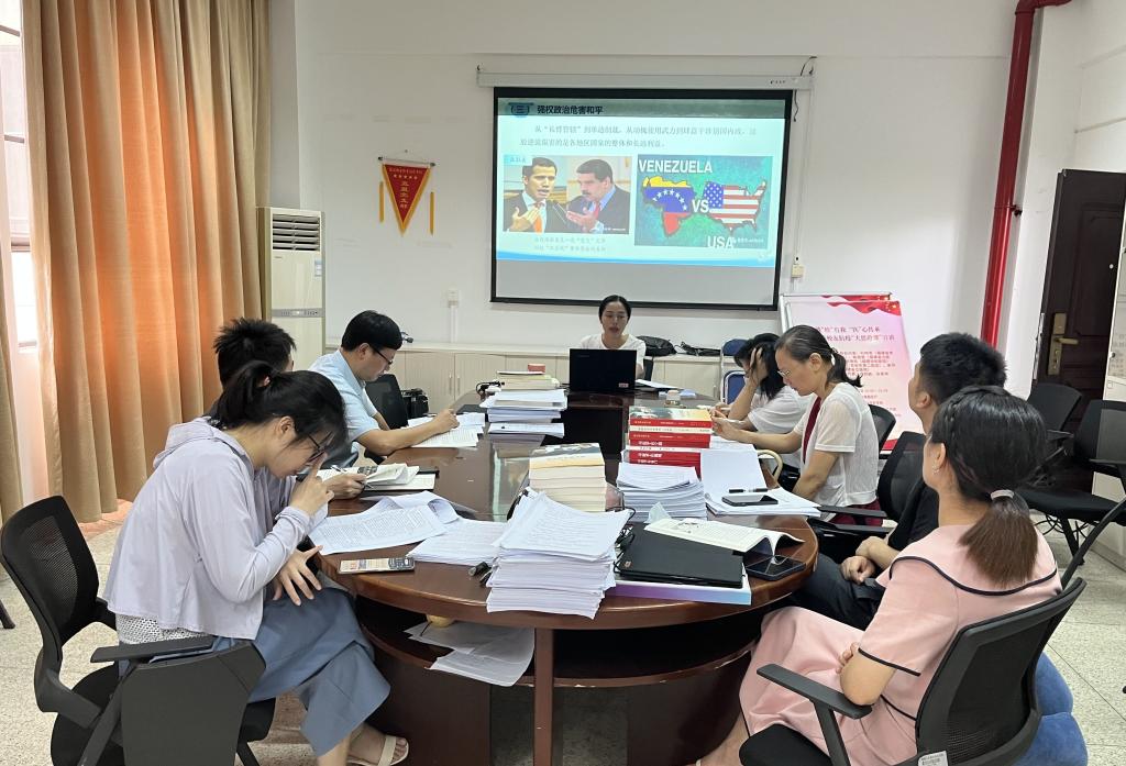 備課會(huì)上,主備課教師張茵珠圍繞教學(xué)設(shè)計(jì)、教學(xué)方法、課程重難點(diǎn)、課程互動(dòng)、學(xué)生能力和素質(zhì)培養(yǎng)目標(biāo)等方面進(jìn)行分享,強(qiáng)調(diào)要引導(dǎo)學(xué)生能自覺認(rèn)清世界安全這一事關(guān)人類和平發(fā)展重大問題的根本所在,要時(shí)刻保持政治清醒,站穩(wěn)中國(guó)立場(chǎng)。