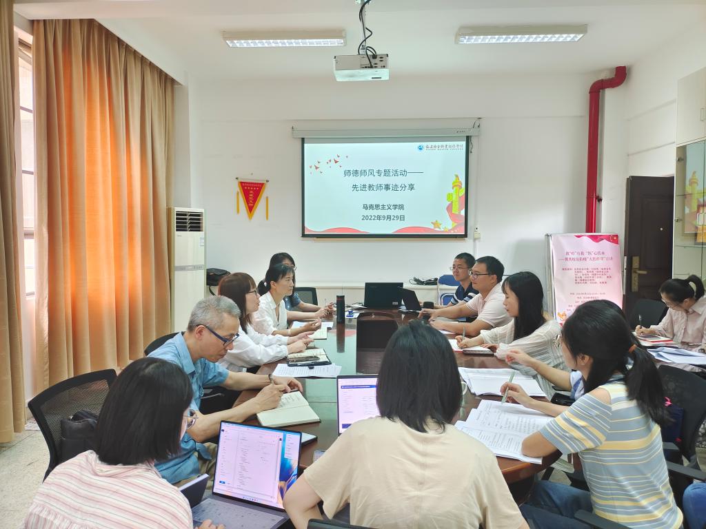 為加強(qiáng)師德師風(fēng)建設(shè),增強(qiáng)教師的立德樹人責(zé)任感與使命感,2022年9月29日上午,馬克思主義學(xué)院開展師德師風(fēng)專題活動(dòng)——先進(jìn)教師事跡分享。