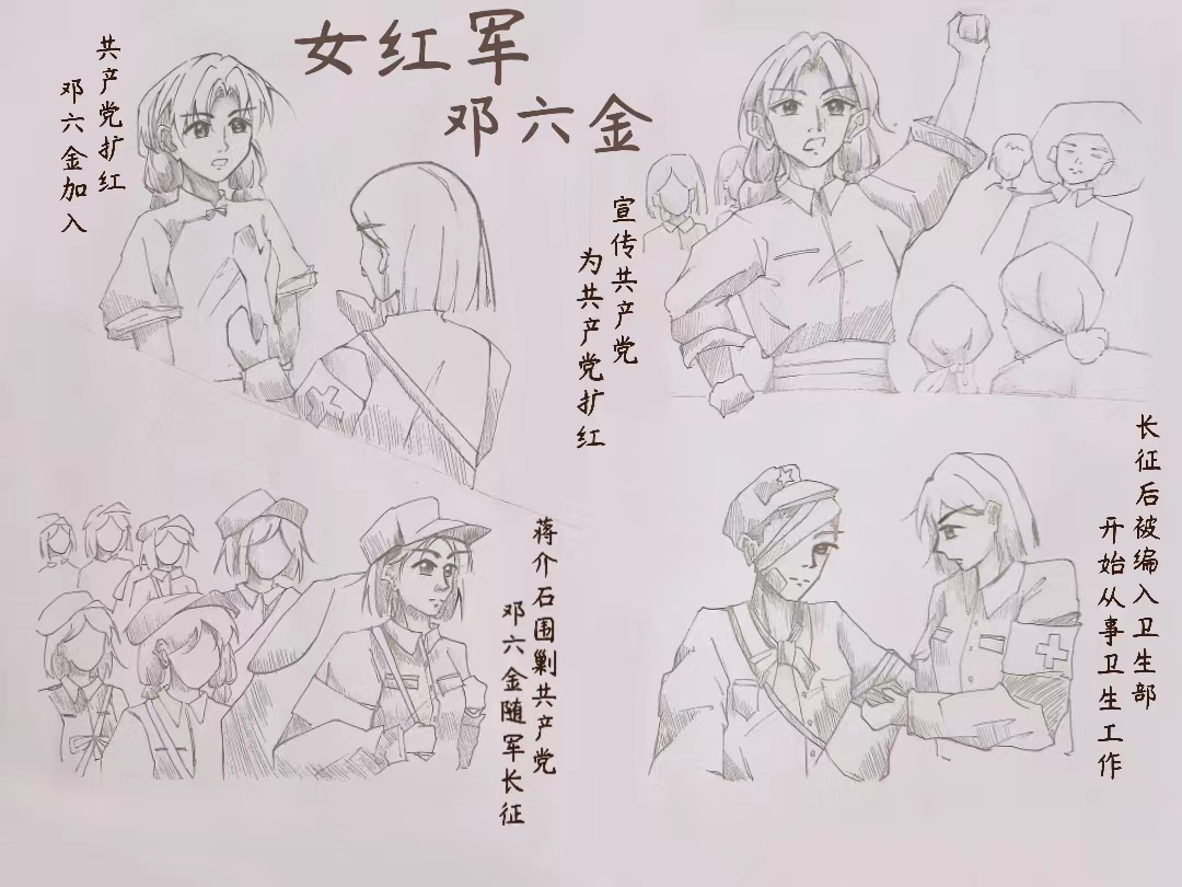 《從閩西蘇區(qū)走出的女紅軍——鄧六金》通過繪畫形式,追憶了從望郎媳到女紅軍、從閩西長(zhǎng)征走到陜北的唯一女紅軍鄧六金的一生,特別描繪了長(zhǎng)征途中,鄧六金克服缺醫(yī)少藥的困難,以女同志特有的細(xì)心和耐心,精心護(hù)理傷員,幫助擦洗傷口、換藥、喂飯的生動(dòng)事跡。繪畫作品《南昌起義軍在汀州福音醫(yī)院》《白求恩在延安》《抗“疫”逆行天使》等一張張畫作,記載著一代代紅醫(yī)為祖國衛(wèi)生健康事業(yè)作出的不可磨滅的貢獻(xiàn),展示了紅色閩醫(yī)在革命戰(zhàn)爭(zhēng)時(shí)期、社會(huì)主義現(xiàn)代化建設(shè)時(shí)期不畏艱難、救死扶傷的白衣戰(zhàn)士情懷。