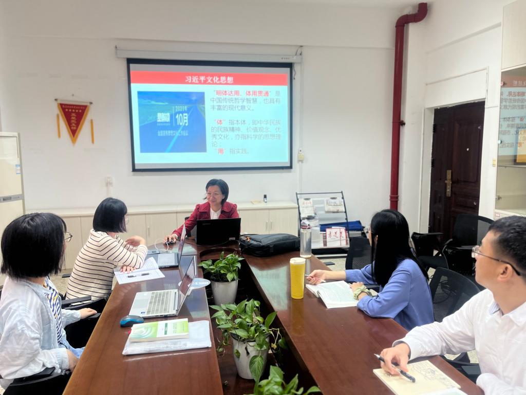 會(huì)上,教師們共同學(xué)習(xí)了習(xí)近平總書(shū)記在新時(shí)代文化建設(shè)方面的新思想新觀點(diǎn)新論斷?!八枷氲赖屡c法治”教研室主任顏冰鳳指出,習(xí)近平文化思想是一個(gè)不斷展開(kāi)的開(kāi)放式思想體系,老師們要不斷加深對(duì)習(xí)近平文化思想的學(xué)習(xí)、研究、闡釋,并自覺(jué)貫徹落實(shí)到教學(xué)工作之中,傳播當(dāng)代中國(guó)價(jià)值觀念、反映全人類共同價(jià)值,為展現(xiàn)生動(dòng)立體的中國(guó)形象,推動(dòng)構(gòu)建人類命運(yùn)共同體譜寫(xiě)新篇章。