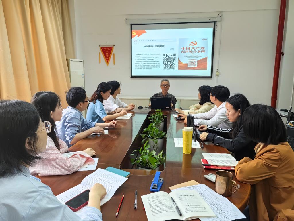 2024年4月18日,毛澤東思想和中國特色社會主義理論體系概論教研室按照直屬馬克思主義學(xué)院黨支部部署要求,在厚德樓107會議室組織全體教師集體學(xué)習(xí)貫徹落實(shí)新修訂的《中國共產(chǎn)黨紀(jì)律處分條例》(以下簡稱《條例》),與時俱進(jìn)加強(qiáng)黨的紀(jì)律建設(shè),堅(jiān)持以嚴(yán)的基調(diào)強(qiáng)化師德師風(fēng)教育。
