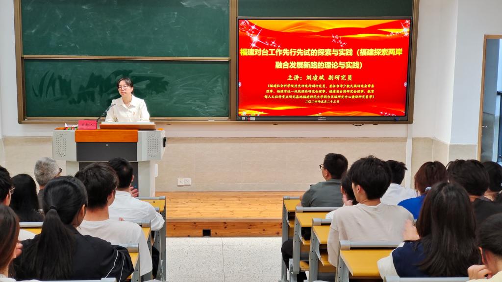 為進(jìn)一步深化對(duì)“四個(gè)堅(jiān)定”的理解與認(rèn)識(shí),鑄牢中華民族共同體意識(shí),2024年5月23日,我校邀請(qǐng)福建社會(huì)科學(xué)院歷史研究所副研究員劉凌斌在崇健樓201開(kāi)展《福建對(duì)臺(tái)工作先行先試的探索與實(shí)踐》專(zhuān)題講座。講座由馬克思主義學(xué)院副書(shū)記賴(lài)文金主持,全體專(zhuān)兼課思政教師及醫(yī)學(xué)院學(xué)生代表參加。