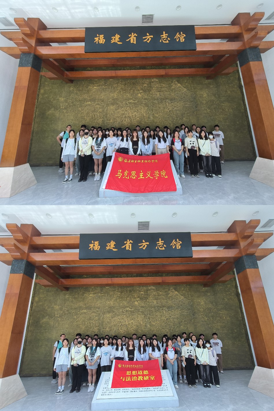為深入貫徹落實習(xí)近平總書記對學(xué)校思政課建設(shè)作出的重要指示精神,貫徹落實《福建衛(wèi)生職業(yè)技術(shù)學(xué)院全面推進“大思政課”建設(shè)實施方案》,推動中華優(yōu)秀傳統(tǒng)文化教育走深走實,提升學(xué)生對福建省情地情的了解與認識,2024年5月29日,23級檢驗301班學(xué)生在馬克思主義學(xué)院教師張茵珠、鄒亞彤的帶領(lǐng)下,前往福建省方志館參觀學(xué)習(xí)。