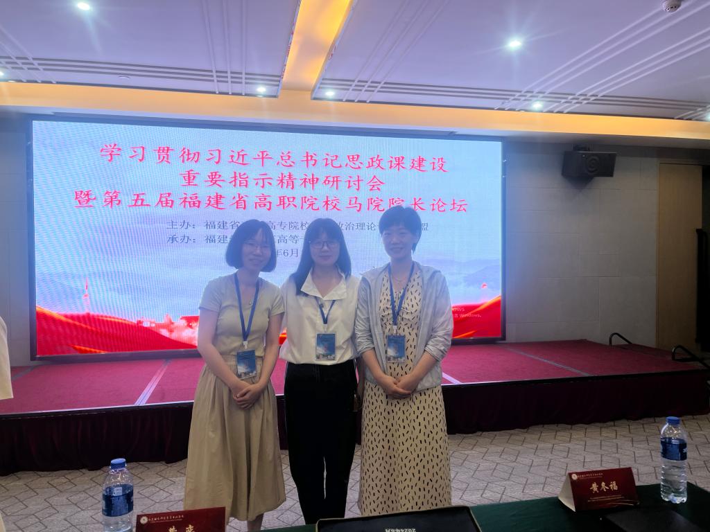 2024年6月29日,學習貫徹習近平總書記思政課建設重要指示精神研討會暨第五屆福建省高職高專院校馬克思主義學院院長論壇在福州召開,我校馬克思主義學院院長熊美蘭、思想道德與法治教研室主任顏冰鳳、形勢與政策教研室主任鄭冰與來自全省27所高職院校的馬院院長、思政課骨干教師80余名代表共同參加了會議。