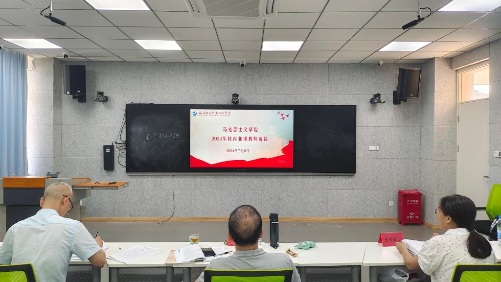 2024年7月6日,馬克思主義學院在篤行樓智慧教室開展2024年校內(nèi)兼課教師選拔活動。活動邀請了學校質(zhì)量管理辦公室主任郭禮堅副教授、質(zhì)量管理辦公室副主任王珊珊副教授和校督導胡濟林副教授3位專家擔任評委,來自全校各學院、部門的34名教師報名參加。