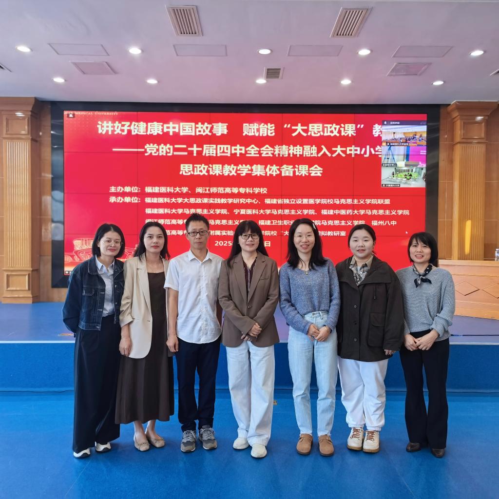2025年11月14日,為深入學(xué)習(xí)貫徹黨的二十屆四中全會(huì)精神,幫助學(xué)生深刻認(rèn)識(shí)推進(jìn)健康中國(guó)建設(shè)的重大意義,扎實(shí)推進(jìn)大中小學(xué)思政課一體化教育教學(xué)改革創(chuàng)新,凝聚跨學(xué)段教研共識(shí),推動(dòng)學(xué)校思政課建設(shè)的高質(zhì)量發(fā)展,培養(yǎng)擔(dān)當(dāng)民族復(fù)興重任的時(shí)代新人,我校馬克思主義學(xué)院黨總支書記、院長(zhǎng)熊美蘭一行參加由福建醫(yī)科大學(xué)馬克思主義學(xué)院主辦,我校馬院承辦的“黨的二十屆四中全會(huì)精神融入大中小學(xué)思政課教學(xué)”集體備課會(huì)。
