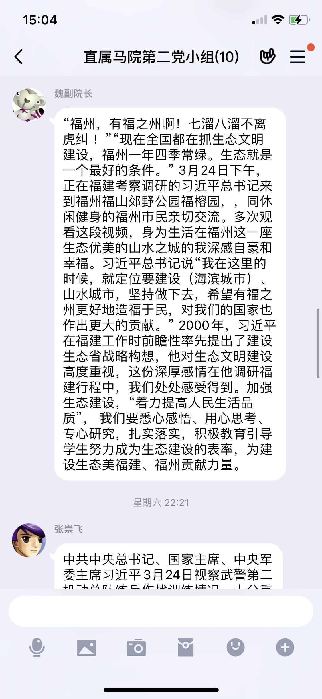 我校馬克思主義學院思政課教師從習近平總書記福建行第一站開始就密切關注相關信息,高度關注習近平總書記關心關注福建改革發(fā)展的相關問題。以“習近平福建行”為主題,馬院理論學習中心組召開理論學習中心組會,直屬馬克思主義學院第一、第二黨小組召開黨小組會進行熱烈討論。從QQ群即興交流中流露出我校思政人對國家發(fā)展、福建改革的情懷與關切。習近平總書記曾說:“對國之大者要心中數。”我校思政課教師不局限于即興交流,更是靜心思考,以“習近平福建行”為背景開展中心組學習及黨小組專題討論,還組織習近平新時代中國特色社會主義思想讀書社、時代先鋒等社團成員開展“習近平福建行”大討論。跟隨習近平總書記的腳步,討論的話題從南平、三明到福州、從國家公園、生態(tài)茶園、文化保護單位到醫(yī)院、農村、企業(yè)、學校。我校師生對改革發(fā)展的新形勢、新要求有了更加深刻的認識。