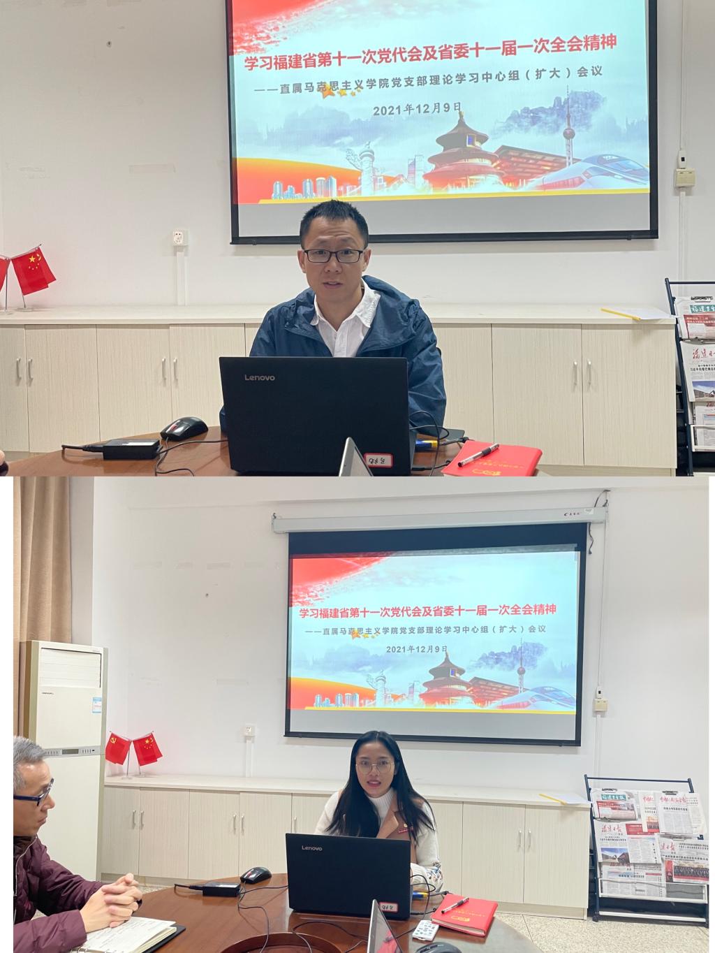 2021年12月9日,直屬馬克思主義學(xué)院黨支部在107會議室集中開展學(xué)習(xí)福建省第十一次黨代會及省委第十一屆一次全會精神,學(xué)習(xí)活動由黨支部副書記來朋珍主持,理論學(xué)習(xí)中心組全體成員出席,校黨委黨史學(xué)習(xí)教育領(lǐng)導(dǎo)小組第一指導(dǎo)小組組長曾武祈列席參加并進行指導(dǎo),支部其他黨員同學(xué)列席參加學(xué)習(xí)交流。