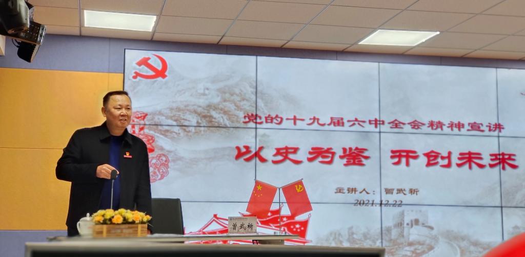 曾武祈圍繞深刻認(rèn)識黨的十九屆六中全會的歷史意義、重大成果、重大部署等方面內(nèi)容,對黨的十九屆六中全會精神進(jìn)行了全面宣講和深刻闡釋。