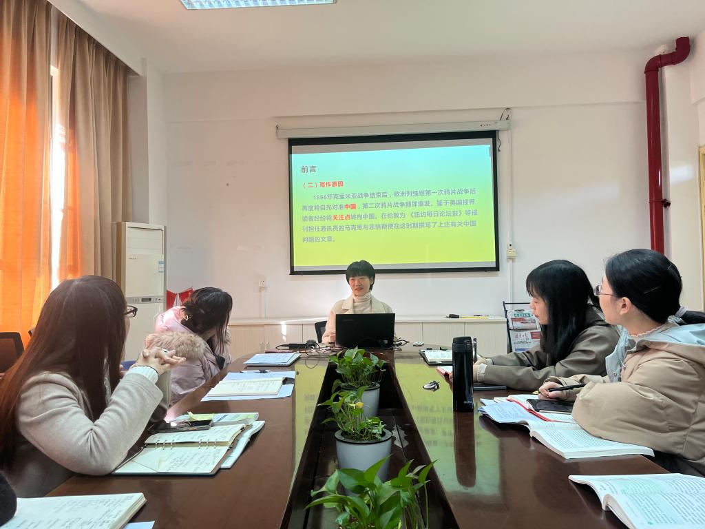 活動(dòng)中,鄭冰從《馬克思恩格斯論中國(guó)之<中國(guó)革命和歐洲革命>》的寫(xiě)作背景、中國(guó)革命的具體內(nèi)涵、中國(guó)與歐洲各國(guó)間的緊密聯(lián)系三個(gè)方面入手進(jìn)行研讀,指出該著作的思想主線為揭露西方殖民主義的強(qiáng)盜面目,譴責(zé)鴉片戰(zhàn)爭(zhēng)的侵略性質(zhì)。