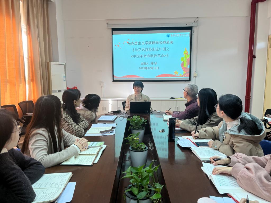 2022年1月6日上午,直屬馬克思主義學(xué)院黨支部第一黨小組在107會(huì)議室開(kāi)展經(jīng)典研學(xué)分享活動(dòng)。此次活動(dòng)由黨支部委員羅蕓同志主持,鄭冰同志主講,研學(xué)內(nèi)容為《馬克思恩格斯論中國(guó)之<中國(guó)革命和歐洲革命>》。