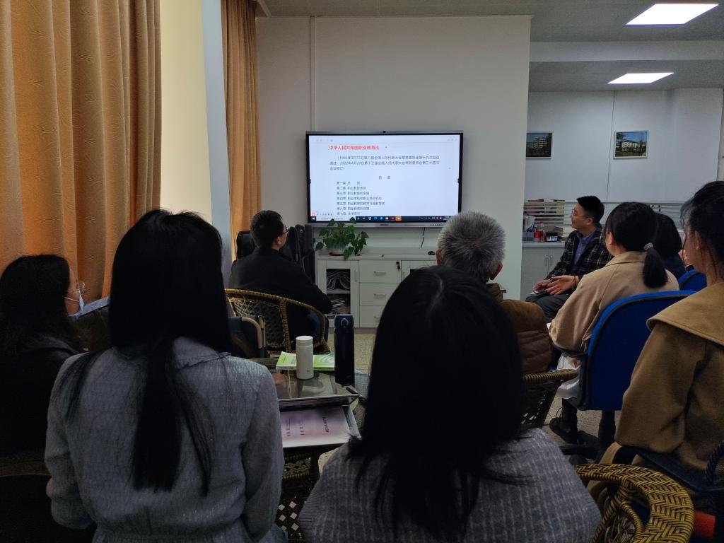 宣傳委員羅蕓同志組織支部黨員共同探討我國新修訂《中華人民共和國職業(yè)教育法》的背景。我國擁有世界上規(guī)模最大的職業(yè)教育體系,年均輸送1000萬畢業(yè)生。一方面國家對(duì)于職業(yè)教育高度重視,近年來不斷出臺(tái)利好政策;另一方面,社會(huì)認(rèn)可度不高、教育質(zhì)量不高等問題依然是職業(yè)教育缺乏吸引力的主要原因。此次新修訂的職業(yè)教育法針對(duì)諸多現(xiàn)實(shí)問題,回應(yīng)了社會(huì)關(guān)切。