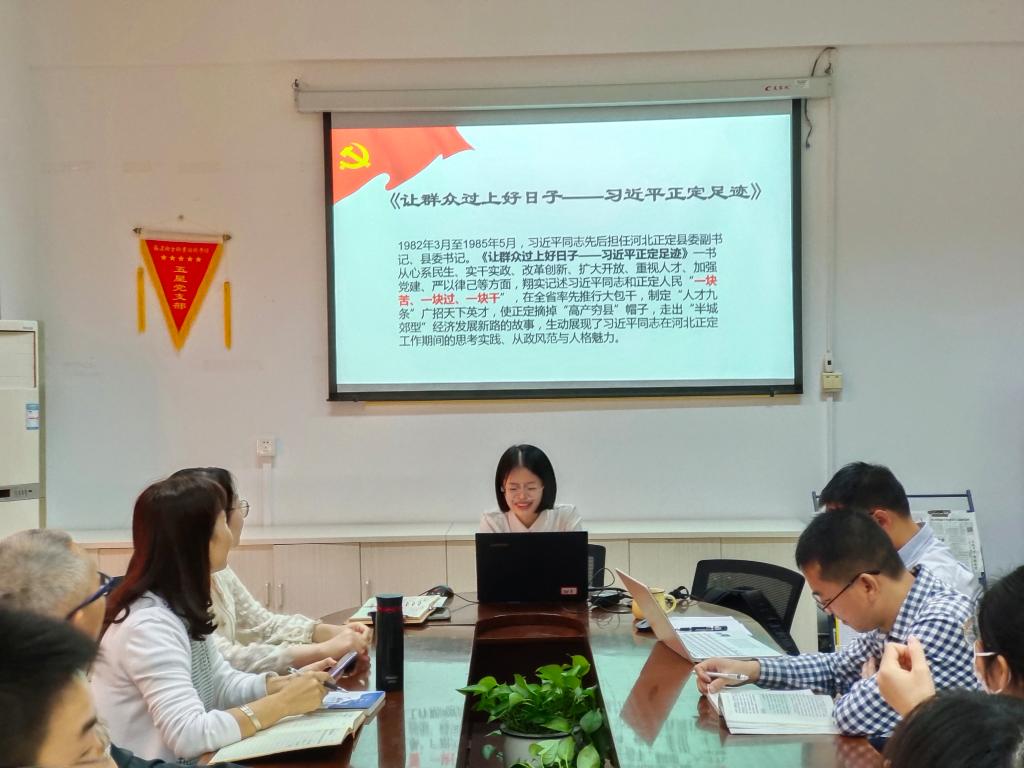 羅蕓同志分享她閱讀《讓群眾過上好日子——習(xí)近平正定足跡》后的真切感受,她分享了她從書中感受到的習(xí)近平同志的為民情懷,并從用心傾聽群眾心聲、用情增強(qiáng)群眾意識、用力解決群眾難題、用智創(chuàng)新群眾工作等四個方面談到在教學(xué)崗位中的具體做法。