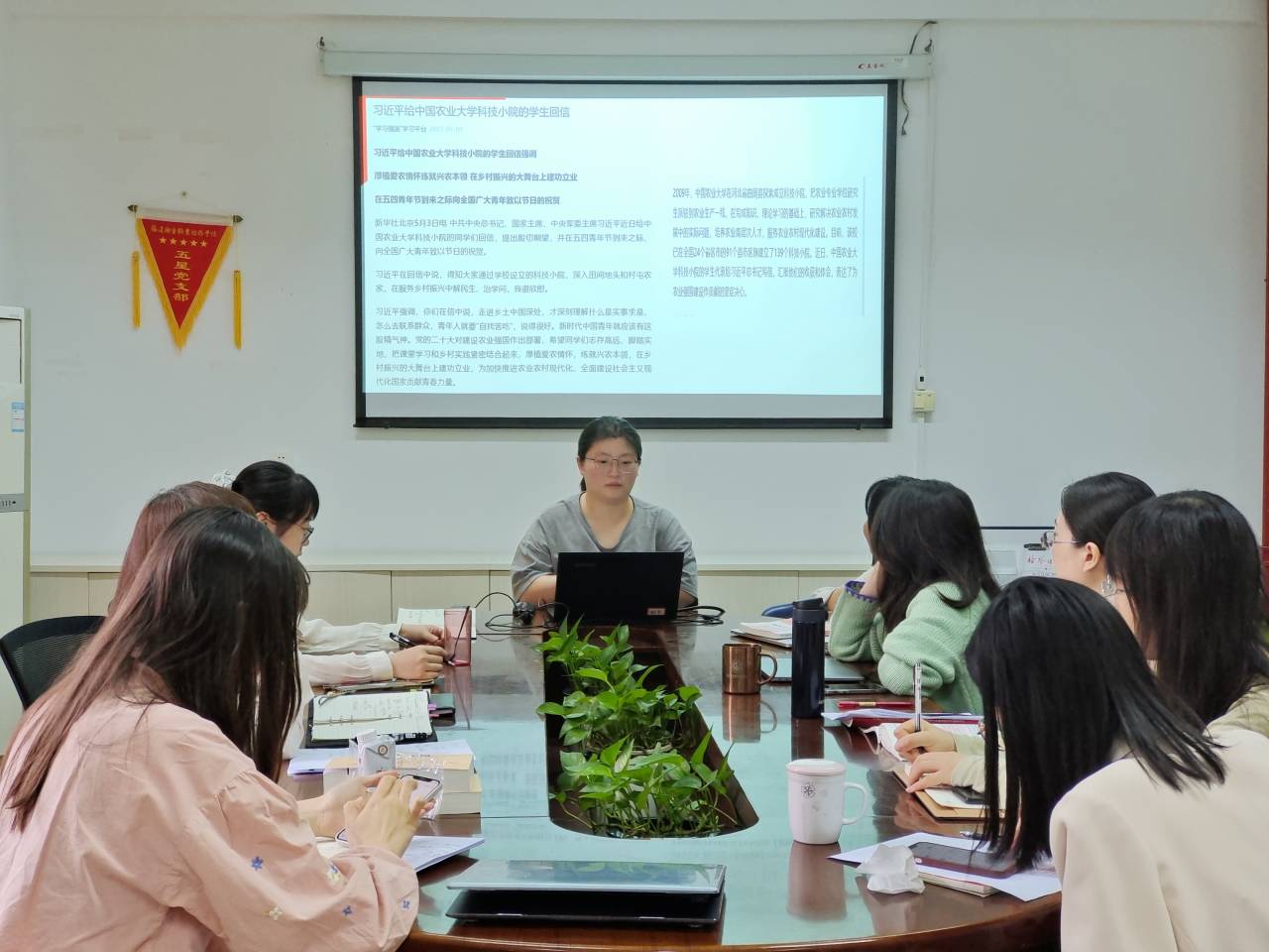 曾美玲同志分享了習(xí)近平總書記給中國農(nóng)業(yè)大學(xué)科技小院的學(xué)生回信等重要指示精神的心得,她談到作為新時代青年要實事求是、密切聯(lián)系群眾,還要與黨同心、跟黨奮斗,在工作中始終保持熾熱情感和堅毅行動。
