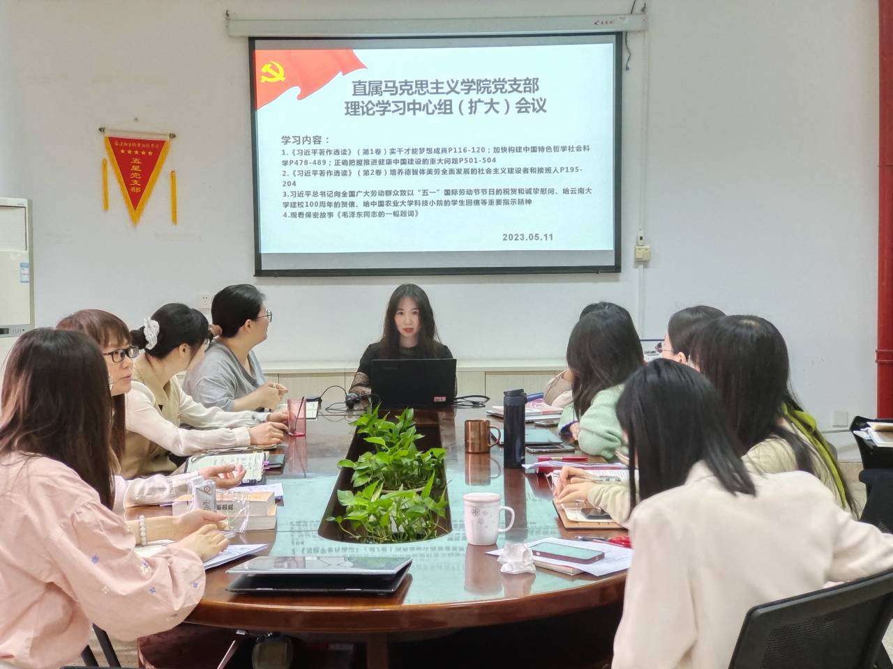 2023年5月11日,直屬馬克思主義學(xué)院黨支部在行政樓107開展理論學(xué)習(xí)中心組(擴(kuò)大)會議。會議由黨支部書記熊美蘭主持。