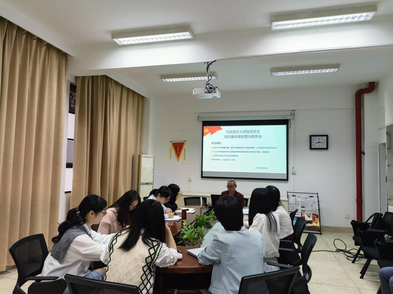 會(huì)上,胡濟(jì)林同志領(lǐng)學(xué)習(xí)近平總書記重要文章《鍥而不舍落實(shí)中央八項(xiàng)規(guī)定精神,以優(yōu)良黨風(fēng)引領(lǐng)社風(fēng)民風(fēng)》《黨政機(jī)關(guān)厲行節(jié)約反對(duì)浪費(fèi)條例》《違反中央八項(xiàng)規(guī)定及其實(shí)施細(xì)則精神典型案例》,強(qiáng)調(diào)中央八項(xiàng)規(guī)定是長期有效的鐵規(guī)矩、硬杠杠,大家要深刻領(lǐng)悟其精神實(shí)質(zhì),持續(xù)深化作風(fēng)建設(shè),以案為鑒,自覺強(qiáng)化廉潔意識(shí)、嚴(yán)守紀(jì)律紅線、錘煉過硬作風(fēng)。隨后,為增強(qiáng)教育效果,會(huì)議組織觀看《反腐為了人民》警示教育片,進(jìn)一步筑牢拒腐防變的思想防線。