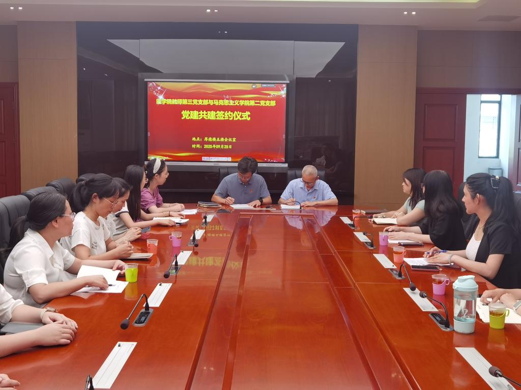 為積極推進(jìn)基層黨建工作創(chuàng)新,推進(jìn)馬克思主義學(xué)院和專(zhuān)業(yè)院系在落實(shí)立德樹(shù)人根本任務(wù)上的深度融合,2025年9月25日,馬克思主義學(xué)院第二黨支部與醫(yī)學(xué)院教師第三黨支部在厚德樓五樓會(huì)議室舉行黨建共建簽約儀式。共建雙方表示,將以此為契機(jī),在新起點(diǎn)上實(shí)現(xiàn)資源共享、優(yōu)勢(shì)互補(bǔ),共同提升黨建工作水平和教學(xué)業(yè)務(wù)水平。