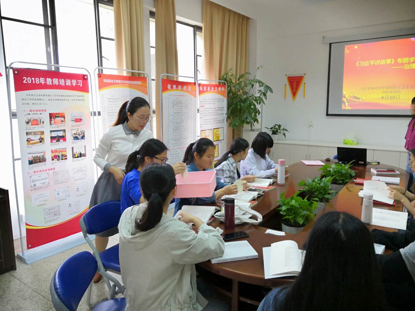與書相伴的人生,一定有質(zhì)量,有生機(jī);書香飄溢的社團(tuán),一定有內(nèi)涵,有發(fā)展。伴著林徽因的“你是人間的四月天”,我們于4月19號(hào)在行政樓107開展了《習(xí)近平講故事》中的“治理故事”專題讀書活動(dòng),出席會(huì)議的有指導(dǎo)老師楊盈,星星分隊(duì)學(xué)生代表。