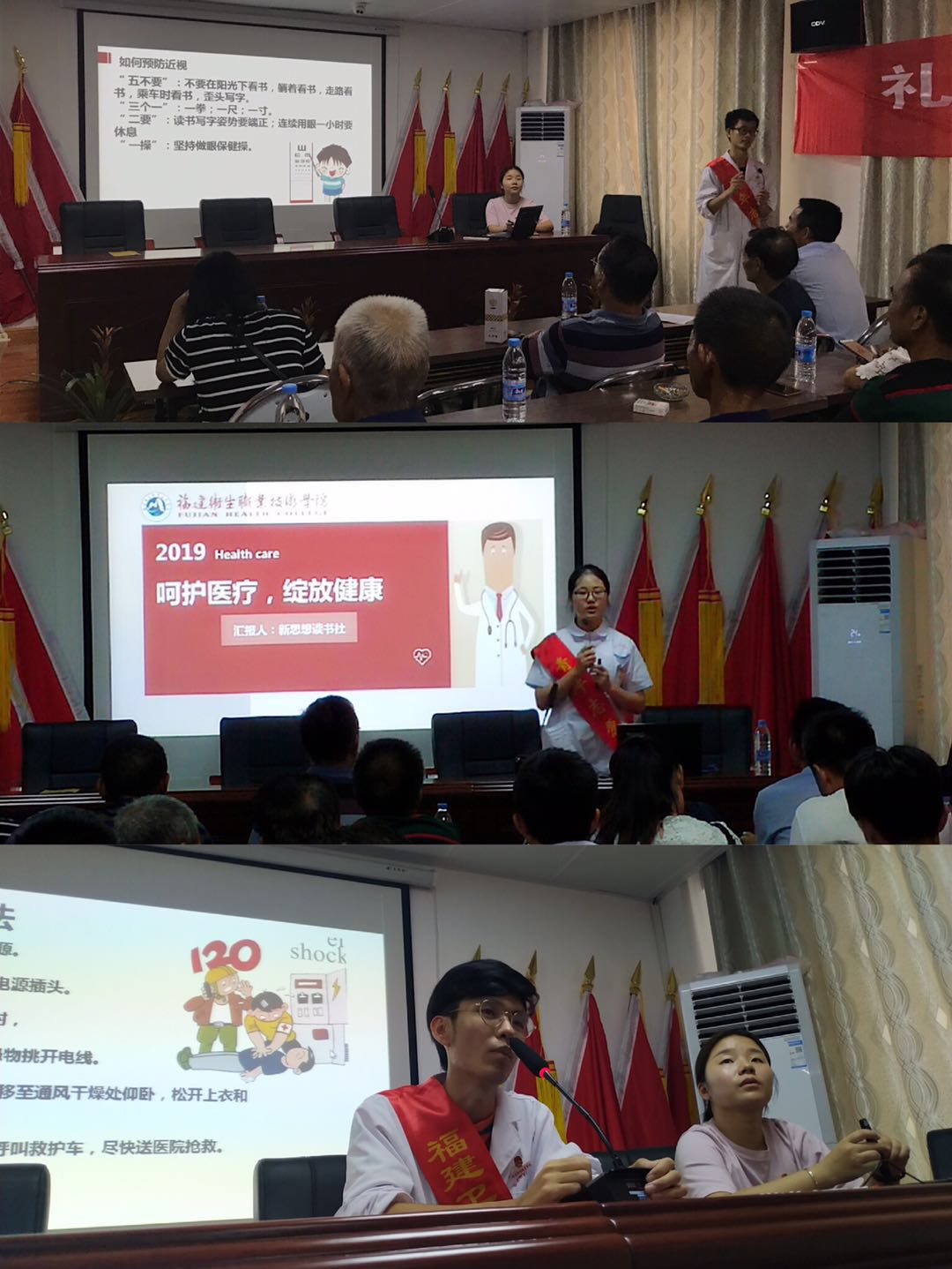 習(xí)近平總書記對“健康中國”戰(zhàn)略做了一個重要的瞻望,要求在全面建成小康社會過程當(dāng)中廣大人民群眾要獲得更多健康美好的生活,為此由習(xí)近平新時代中國特色社會主義思想讀書社成員朱水莉、楊炳梁及黃永良三名同學(xué)開展題為“呵護(hù)醫(yī)療、綻放健康”的宣講。接著由思政課教師宣講隊成員江洪老師、林美辰老師分別進(jìn)行了宣講?!安煌跣摹⒗斡浭姑毙僦h的十九大精神,‘不忘初心’就是要為中國人民謀幸福,‘牢記使命’是要為中華民族謀復(fù)興。為此江洪老師展開了對初心、使命的主要內(nèi)容、它的內(nèi)涵、意義并結(jié)合新民村的實際情況進(jìn)行了一個具體宣講。為了我們共同的一個鄉(xiāng)村振興戰(zhàn)略接著由林美辰老師針對鄉(xiāng)賢文化的主題進(jìn)行了一個具體的宣講,其中提到了吳孟超先生。接著同學(xué)也在新思想的指導(dǎo)之下結(jié)合我們的醫(yī)學(xué)專業(yè)提問了一些關(guān)于醫(yī)療健康的幾個熱點、難點的問題著重介紹了如燙傷、被蛇咬傷、預(yù)防高血壓等常見醫(yī)療知識及預(yù)防的措施。最后進(jìn)行了一個與村民的交流活動村民們踴躍發(fā)言,場面十分熱烈,鄉(xiāng)親們紛紛表示,對我們師生的宣講非常歡迎。
