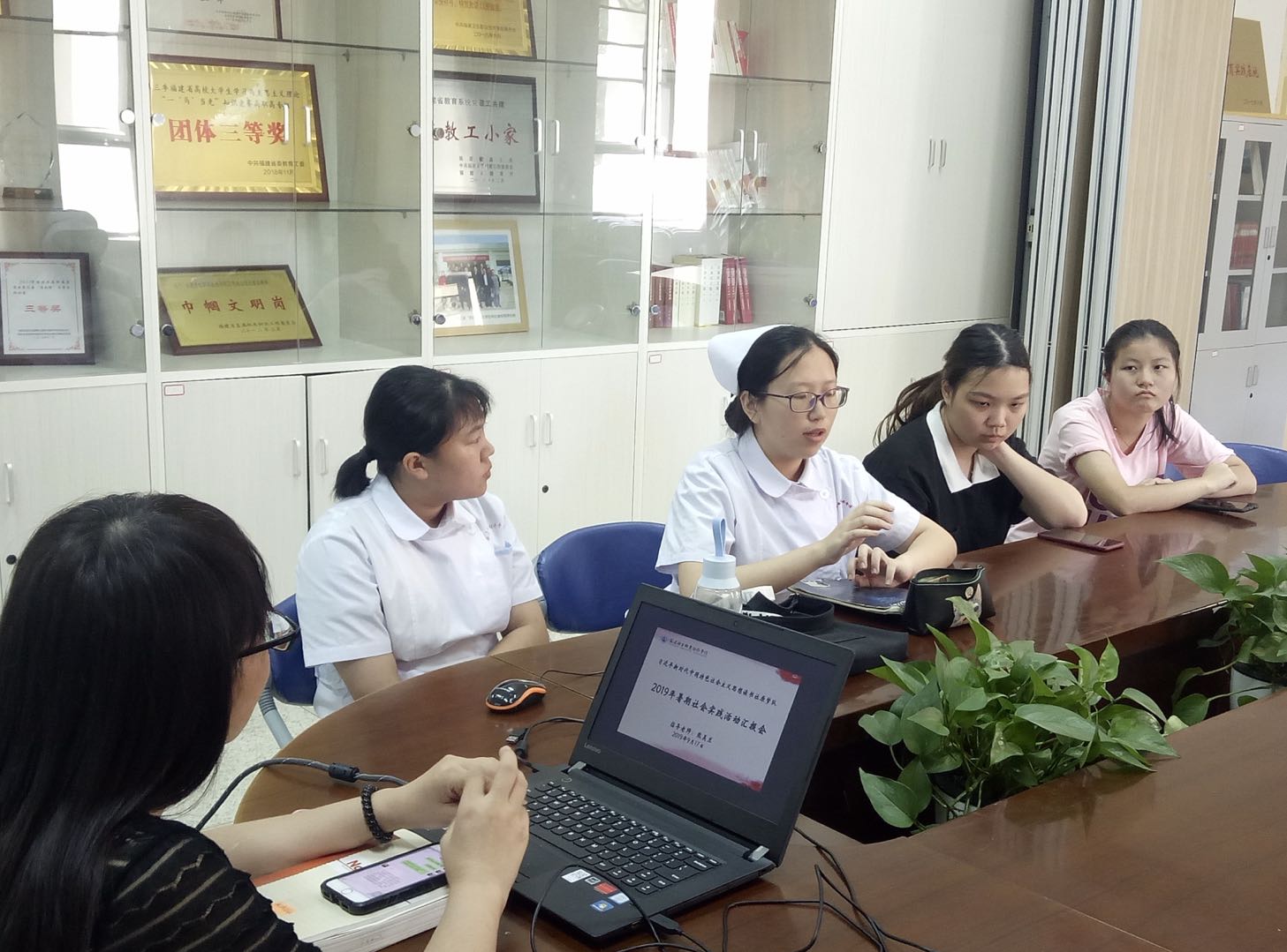 陳瀟穎、林嫻靜、林秀平、林幼娟、蘇欣玫等成員分別交流了以醫(yī)院、社區(qū)衛(wèi)生所的義診、見習和志愿服務中的感悟與收獲。最后,熊美蘭老師對同學們的發(fā)言表示很欣慰,暑期實踐活動告訴我們大學生應該走出象牙塔,身體力行,磨礪意志,完善人格,播撒愛心,勵志踐行。社會實踐活動不僅鍛煉了我們社會實踐的能力,培養(yǎng)了我們獨立處事的判斷力。本次實踐交流會,重溫了師生們過去不久的快樂鍛煉,更是讓我們深深地體會到了愛與關懷,團結與堅持的可貴。