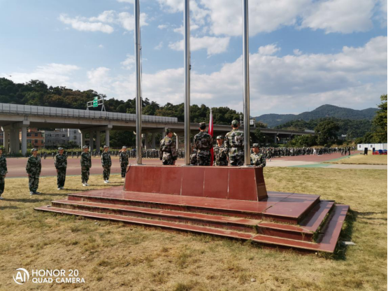 2019年9月23日,2019級新生軍訓總結(jié)大會暨開學典禮升旗儀式在操場舉行,迎著朝陽,“八一”學社成員邁著堅定的步伐來到國旗臺下,全場一片肅靜。在激昂的《義勇軍進行曲》中,升旗手振臂一揮,鮮艷的五星紅旗徐徐展開,在全場師生和教官的注目中,迎著初升的太陽,在晨曦中迎風飄揚在我校的上空。