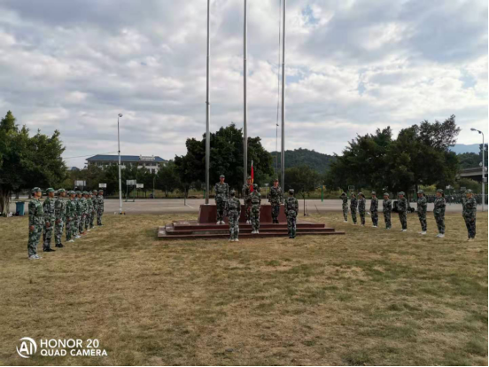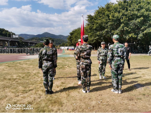 此次活動由馬克思主義學院張崇飛、邱萍老師指導,2018級“八一”學社部分成員及2019級退役復讀新生一起參與本次活動。軍訓伊始,學院“八一社團”組織開展了護旗手培訓活動、軍事化的隊形訓練以及掛旗、拋旗、敬隊禮等動作訓練。