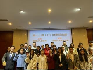 2019年12月9日晚七點(diǎn)整,由時代先鋒協(xié)會和演講與辯論俱樂部聯(lián)合舉辦的第11屆“12·9”時事辯論賽總決賽在實(shí)訓(xùn)樓4樓會議室舉行。此次辯論賽由羅世杰同學(xué)主持,由丁愛芝老師、陳洪月老師、徐舒寧老師、許一柱老師、龍慧老師擔(dān)任評委。