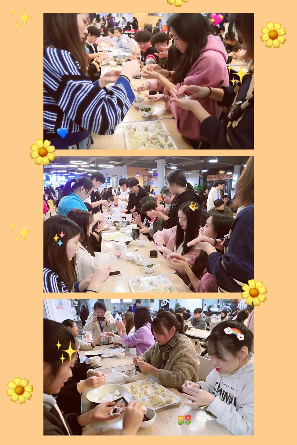 活動(dòng)主要包括四個(gè)部分:追逐嬉戲·包湯圓、笑口常開·包餃子、承載祝?!ふ矍Ъ堹Q及合作共贏·冬至轉(zhuǎn)轉(zhuǎn)轉(zhuǎn)小游戲。活動(dòng)開展過(guò)程中,同學(xué)們通過(guò)自己動(dòng)手制作冬至湯圓、餃子來(lái)體驗(yàn)傳統(tǒng)節(jié)日的意蘊(yùn)。在本次活動(dòng)中的游戲環(huán)節(jié)還誕生了12名幸運(yùn)小伙伴,獲得了社團(tuán)專屬小禮品。