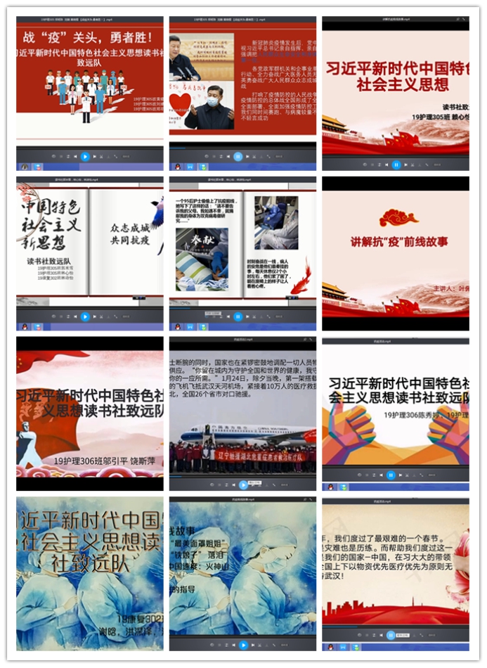 社團(tuán)成員自愿組隊(duì),2-3人為一組,最后形成了6個(gè)組。每組通過收集整理資料、制作PPT、錄屏等環(huán)節(jié),經(jīng)過近2個(gè)星期的精心準(zhǔn)備,最后產(chǎn)生了6組作品。黃曉櫻、劉婧、鄭明珠同學(xué)的作品介紹了新冠肺炎及其防治,介紹了習(xí)近平總書記給出的“最強(qiáng)攻略”:堅(jiān)定信心,同舟共濟(jì),科學(xué)防治,精準(zhǔn)施策!郭米雪、林心怡、林詩怡同學(xué)的作品先是贊美了鐘南山院士等抗戰(zhàn)在一線的醫(yī)護(hù)人員的偉大,再介紹了習(xí)近平總書記對抗擊疫情工作的關(guān)心和支持。謝晗、洪深澤、溫雨潔同學(xué)的作品介紹了“最美面罩姐姐”喻銀燕、十天建成火神山醫(yī)院等故事,以及表達(dá)了習(xí)近平總書記指揮抗疫的信心與決心。葉佩琪、林羽晴、賴心怡同學(xué)的作品表達(dá)了自己對前線抗戰(zhàn)疫情的一線人員的感激與敬佩之情,希望春暖花開,國泰民安!陳秀婷、魏曉雯同學(xué)介紹了疫情發(fā)生的主要時(shí)間點(diǎn)和黨的領(lǐng)導(dǎo)。鄔引平、饒斯萍同學(xué)介紹了首批醫(yī)療救援隊(duì)簽下請戰(zhàn)書奔赴湖北,全國各地為武漢送救助物資的感人故事!