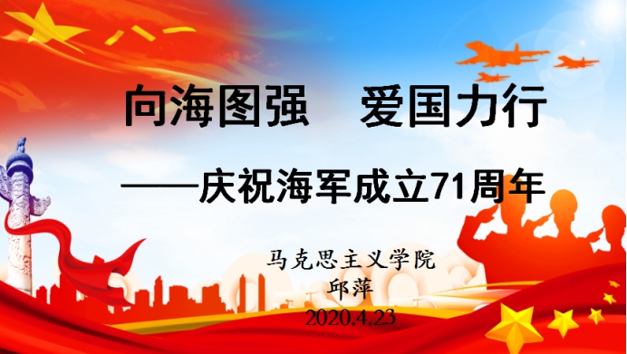 2020年4月23日正值人民海軍成立71周年,當(dāng)天下午,八一學(xué)社開展以“向海圖強(qiáng) 愛國力行”的愛國主義專題講座。本次講座采用線下自學(xué)+線上講座相結(jié)合的方式,以加深社員對(duì)人民海軍的革命精神、海防力量、海軍兵種、新型武器的認(rèn)識(shí),弘揚(yáng)愛國主義主旋律,進(jìn)一步厚植愛國之情。本次講座由八一學(xué)社指導(dǎo)教師邱萍主講,全體社員參加。