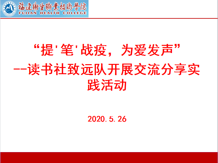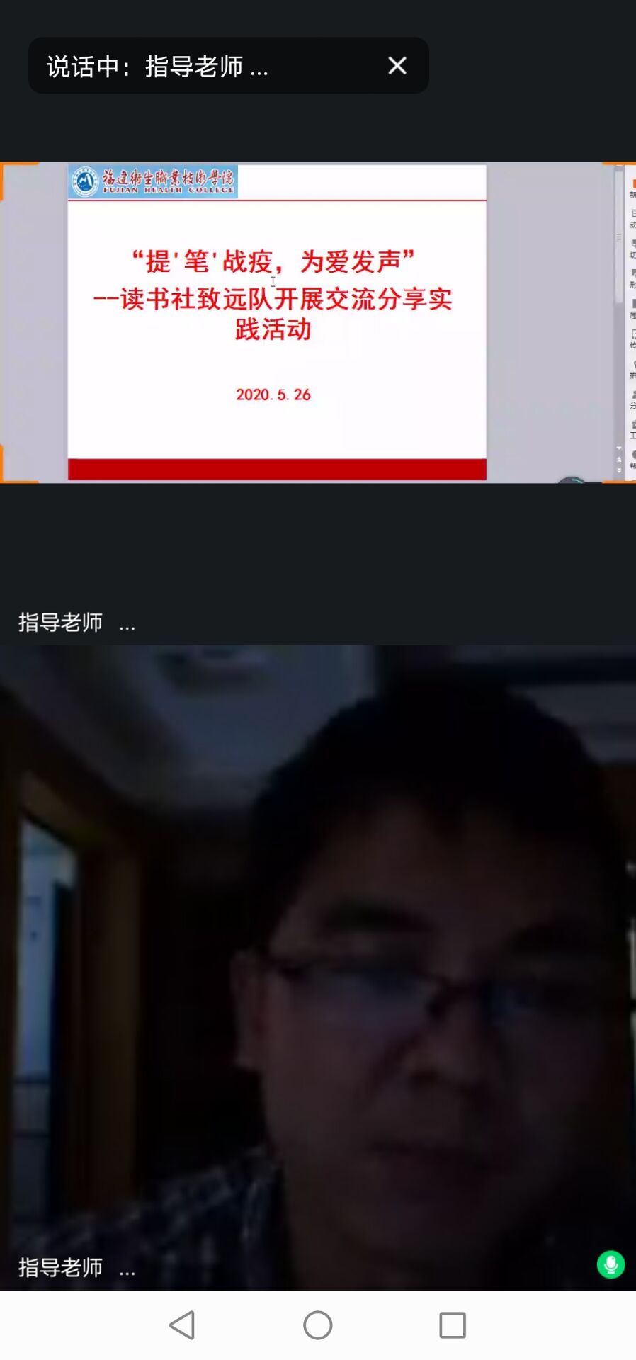 5月11日至5月25日,習(xí)近平新時代中國特色社會主義思想讀書社致遠(yuǎn)隊(duì)開展“提‘筆’戰(zhàn)役,為愛發(fā)聲”活動,社員們用文字記錄中國抗疫故事,傳播正能量,致敬“逆行者”,謳歌偉大的中國精神。5月26日下午,讀書社致遠(yuǎn)隊(duì)在QQ群開展交流分享實(shí)踐活動?;顒佑芍笇?dǎo)老師江洪老師主持,所有社員參加了活動。