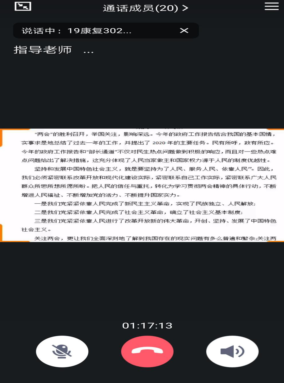 隨后,成員們輪流依次發(fā)言,談了學(xué)習(xí)2020年全國兩會(huì)精神的心得體會(huì)。賴心怡同學(xué)提到了城鄉(xiāng)發(fā)展的問題,并結(jié)合實(shí)際,談了這幾年自己所在村子的飛速發(fā)展;陳秀婷同學(xué)對(duì)李克強(qiáng)總理的政府工作報(bào)告主要內(nèi)容進(jìn)行了梳理,并從大學(xué)生的角度,談到了大學(xué)生要關(guān)注國家大事,增強(qiáng)國家主人翁意識(shí),增強(qiáng)擔(dān)當(dāng)民族復(fù)興大任的使命感和責(zé)任感;洪深澤同學(xué)從今年中國抗擊新冠肺炎疫情的重大事件出發(fā),談到了自己對(duì)“以人民為中心”的理解;林羽晴同學(xué)則講到了今年的脫貧攻堅(jiān)戰(zhàn),堅(jiān)信我們可以如期全面建成小康社會(huì);其他同學(xué)也就自己關(guān)注的問題展開了交流討論。