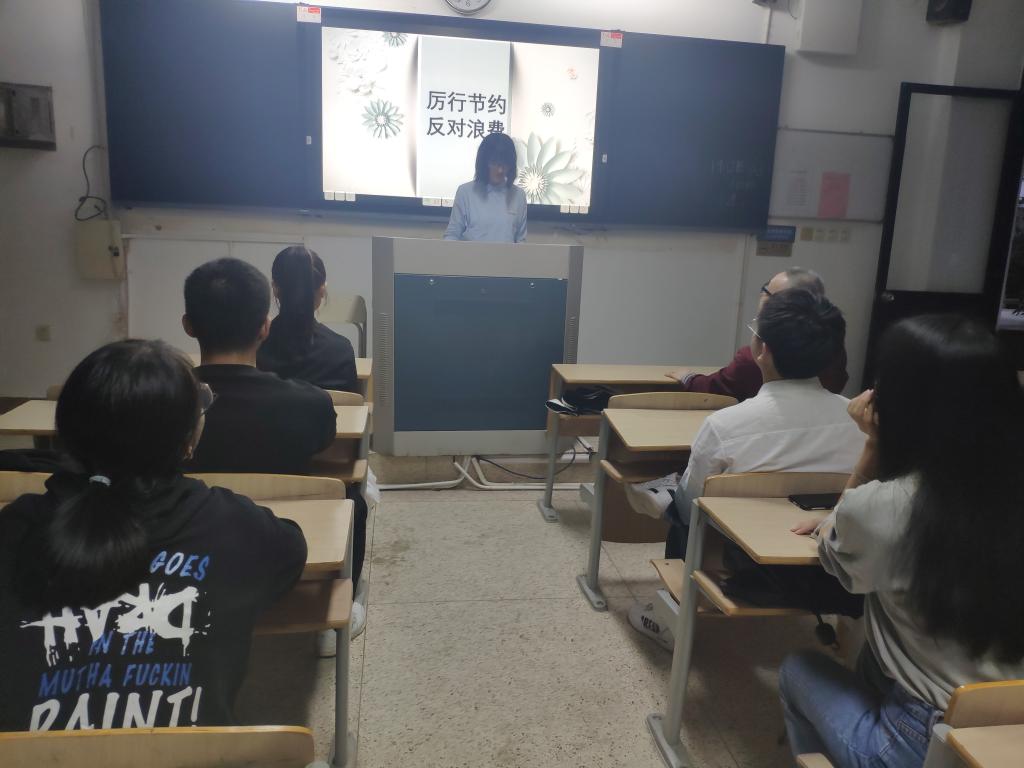 胡老師報告結(jié)束后,阮伶穎、鐘程雅以及魯麗3位同學(xué)分別進(jìn)行了《厲行節(jié)約,反對浪費》、《光盤行動》以及《厲行節(jié)約》的分享和交流,她們分享了“國以儉得之,以奢失之”的觀念,講述了生活中常見的浪費現(xiàn)象、提出節(jié)約的倡議以及闡明作為大學(xué)生的我們該如何做。