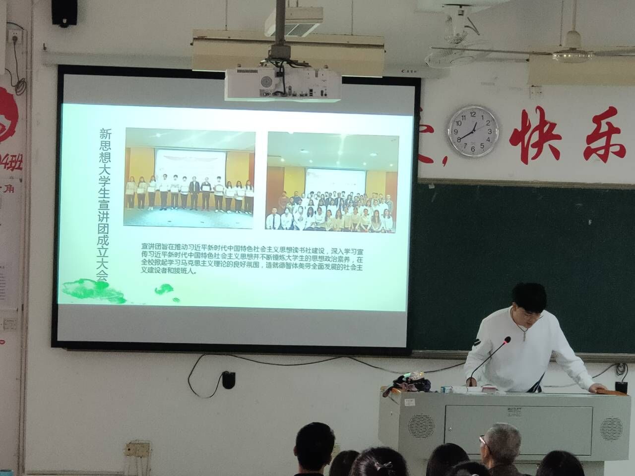 隨后,由青春隊指導(dǎo)老師、也宣講團指導(dǎo)老師胡濟林對讀書社工作做了指導(dǎo)發(fā)言,先是對同學(xué)們能夠加入讀書社表示肯定,讀書社是一個能讓同學(xué)們得到絕對鍛煉的地方,許多的活動以及多課程的學(xué)習(xí)能夠引導(dǎo)學(xué)生更加系統(tǒng)地學(xué)習(xí)習(xí)近平總書記治國理政思想,引導(dǎo)學(xué)生更好地認識中國、讀懂中國,致力成為社會主義核心價值觀的堅定信仰者、積極傳播者、模范踐行者。