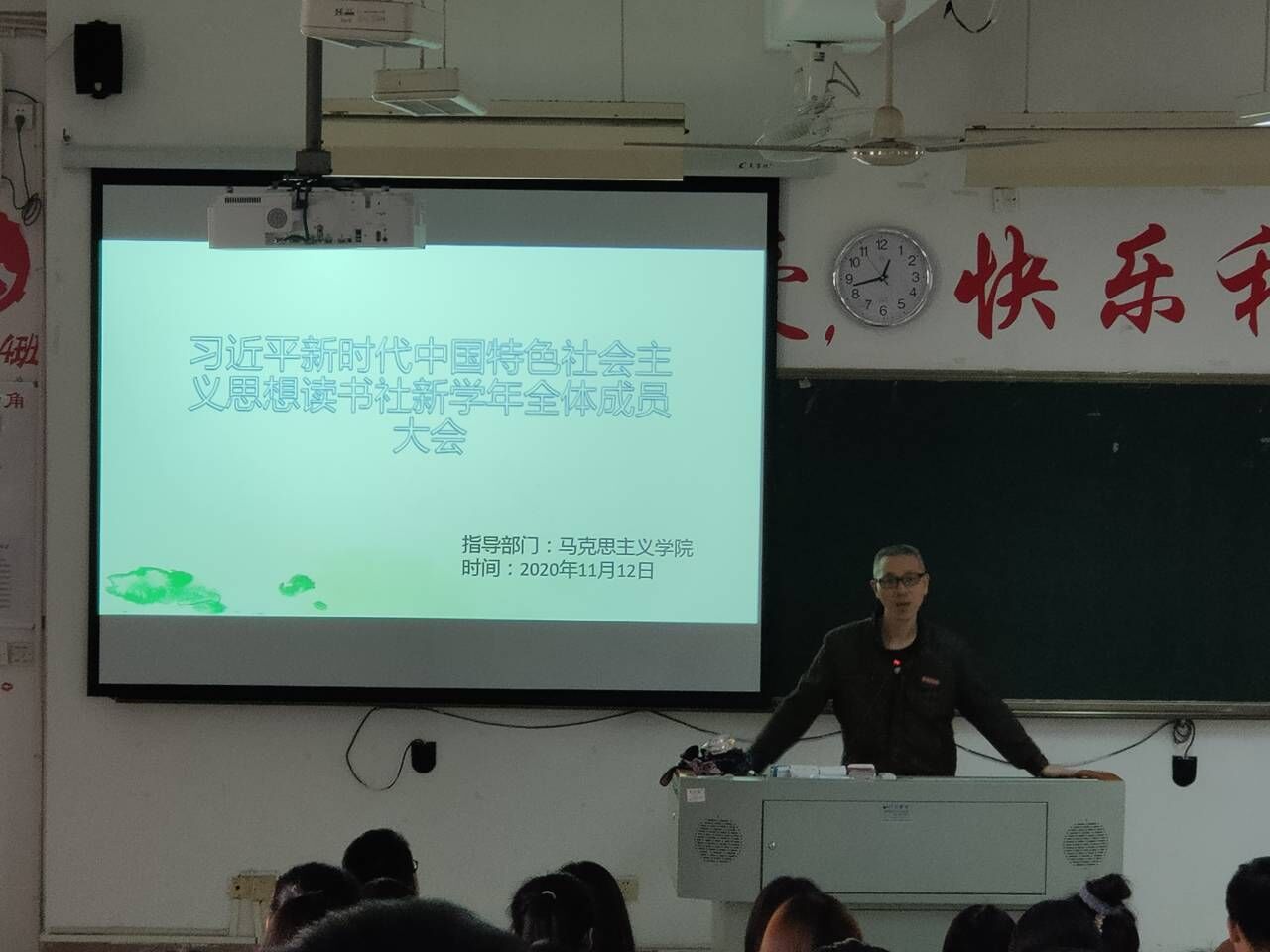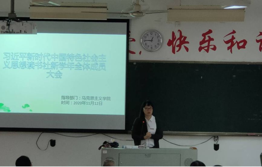 冬日迎暖陽,新思想讀書社于2020年11月12日在教學(xué)樓召開全體社員大會,讀書社19級干事、全體20級新成員約150人,與熊美蘭、胡濟林、江洪和鄭冰等指導(dǎo)老師。