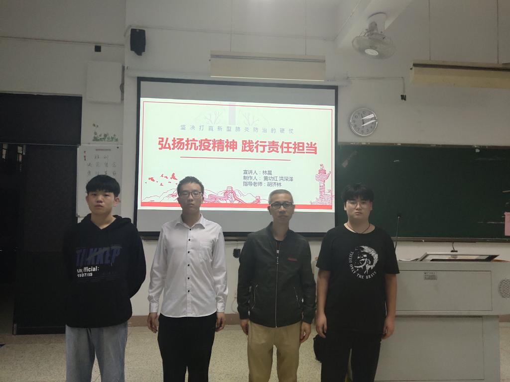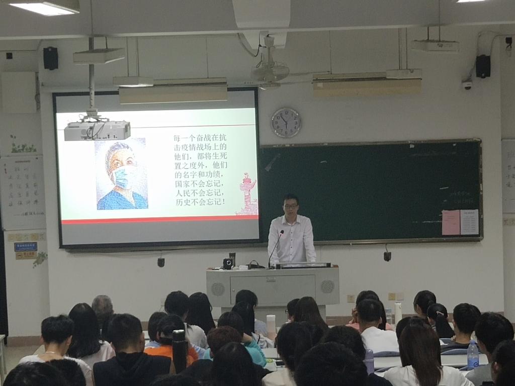 宣講中,曹倩用大量的案例向同學(xué)們解讀“共克時艱”、“共筑民族魂”、“黨員從不會缺席”、“最美中國人”等抗疫先進(jìn)事跡,林晨從“舉國同心,生命至上”、“舍生忘死,不懼犧牲”、“攜手并進(jìn),命運(yùn)與共”、“抗疫精神,中國擔(dān)當(dāng)”角度闡述偉大的抗疫精神,激起了同學(xué)們對抗疫精神的深入思考,引起了同學(xué)們的共鳴。宣講后胡濟(jì)林老師做了小結(jié),勉勵同學(xué)們深入學(xué)習(xí)偉大的抗疫精神,化抗疫精神為學(xué)習(xí)的動力和報效祖國的熱情,腳踏實(shí)地,砥礪前行。
