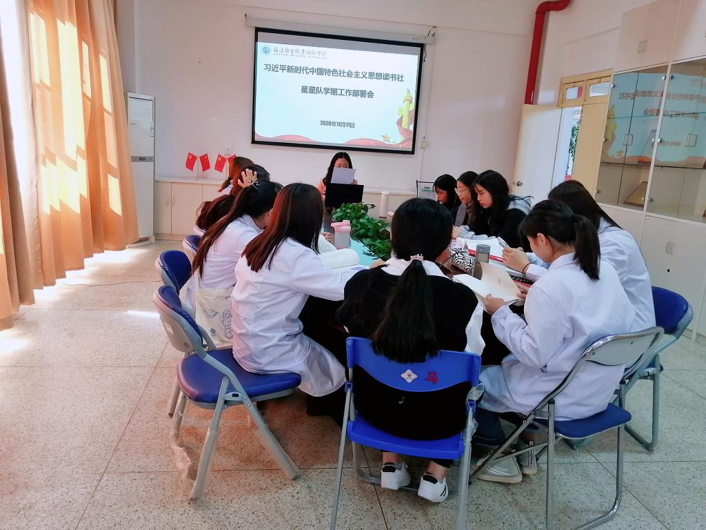 2020年11月11日,習近平新時代中國特色社會主義思想讀書社的星星隊成員在行政樓107會議室進行新學期的工作部署與新社員見面交流會。旨在通過此次的會議,使成員更加了解讀書社,加強隊員間的交流,提高團隊凝聚力。