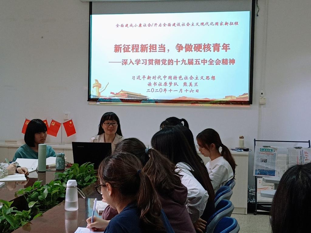 習近平新時代中國特色社會主義思想讀書社原夢隊新學年迎來了20級新成員,于2020年11月16日開啟了本學期第一次集中學習。同學們懷揣著對新思想學習的期待和渴望來到馬院研討室。