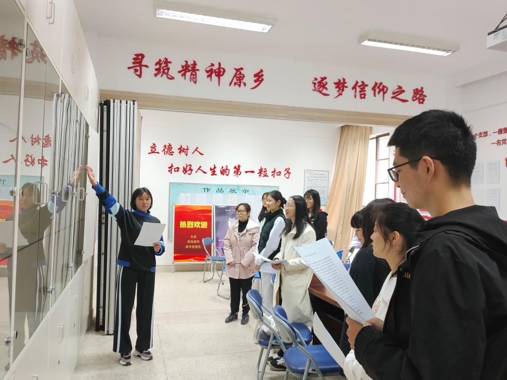 熊老師為10名成員的講解樓層進(jìn)行了合理分工,由19級同學(xué)領(lǐng)隊(duì)分成3至4人組成的3個(gè)小組。話說“術(shù)業(yè)有專攻”,成員們在熟悉全館內(nèi)容的基礎(chǔ)上能夠更有針對性性訓(xùn)練。相信在大家的共同努力下,我們一定能碰撞出不一樣的火花,爭取在去年講解成績的基礎(chǔ)上更上一層樓。