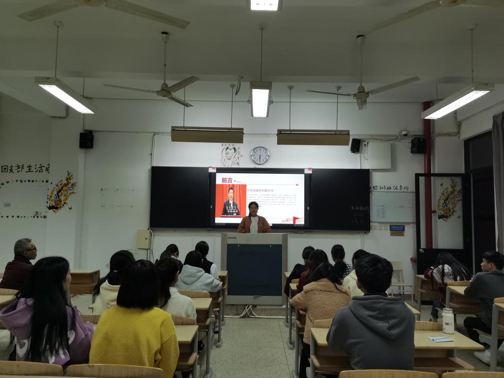 同學們在進行簽到后,由胡濟林老師進行《深入學習貫徹黨的十九屆五中全會精神》的專題報告,胡濟林老師先為同學們解讀會議的名稱,介紹會議召開的時間以及會議主要內(nèi)容等,接著從國內(nèi)外形勢來解讀此次會議召開的背景,重點講述了黨的十九屆五中全會問計于民與頂層設(shè)計相統(tǒng)一、發(fā)展為了人民、五條原則、核心要義——三個“新”等突出特點及亮點,并與同學們一起回顧了“十三五”我國經(jīng)濟社會發(fā)展成就,讓同學們感悟到中國共產(chǎn)黨全心全意為人民服務的根本宗旨,感受到黨堅強有力的領(lǐng)導,在黨的領(lǐng)導下,我國“十三五”期間經(jīng)濟社會蓬勃發(fā)展,目前正朝著實現(xiàn)第二個百年奮斗目標而努力拼搏。
