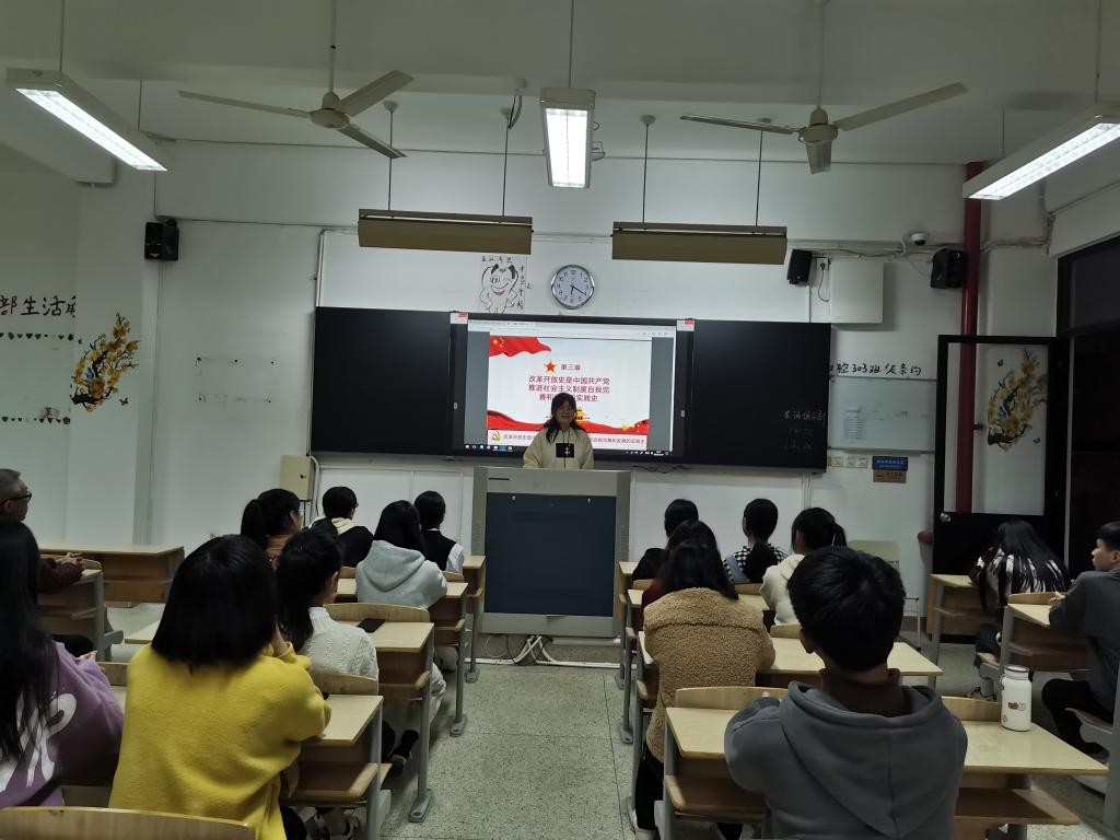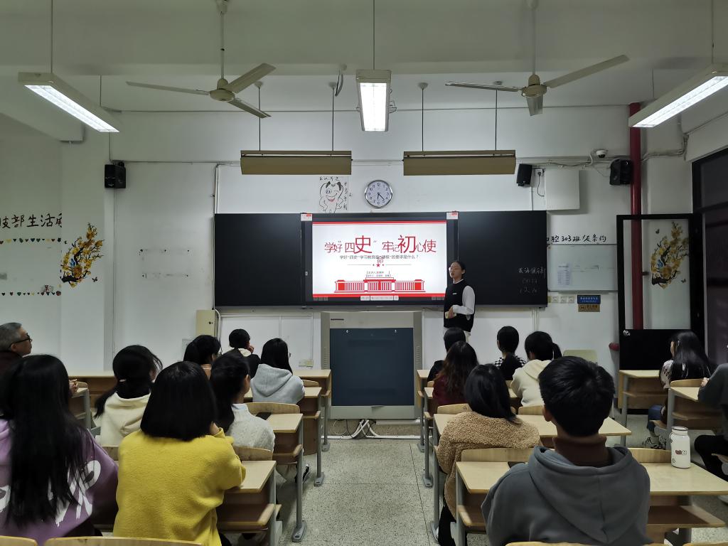 胡老師報告結(jié)束后,曾婉平和連慧琳兩位同學分別進行了《“四史”的學習教育》、《學好“四史”,牢記初心使命》的分享和交流,她們總結(jié)提煉中國共產(chǎn)黨在為中國人民謀幸福、為中華民族謀復興的光輝歷程,讓同學們豐富了歷史知識,培養(yǎng)了歷史的思維,增強了對黨的認識。兩位同學制作的課件精美,演講內(nèi)容熟悉,受到老師和同學的好評。會議最后,同學們進行本次學習的交流與分享。