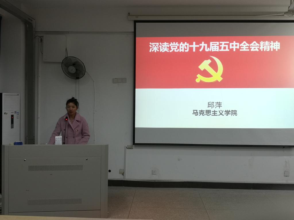 邱萍老師從規(guī)劃《建議》起草、規(guī)劃《建議》亮點(diǎn)、規(guī)劃《建議》突出民生議題、雙循環(huán)的新發(fā)展格局、如何實(shí)現(xiàn)2035年遠(yuǎn)景目標(biāo)等五個(gè)方面進(jìn)行了系統(tǒng)宣講闡釋?zhuān)戎v清楚宏觀上的政策舉措,又不時(shí)引用接地氣的鮮活案例,讓學(xué)生們對(duì)五中全會(huì)精神有了切身的體會(huì)。邱萍老師勉勵(lì)大家把小我融入國(guó)家發(fā)展的大我之中,明確人生目標(biāo),找準(zhǔn)奮斗著力點(diǎn),學(xué)好本領(lǐng),潛心鉆研,掌握觀察和認(rèn)識(shí)世界的正確方法,努力成為國(guó)家棟梁。