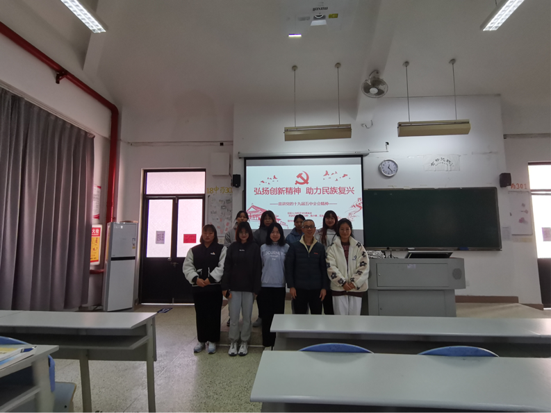 2020年12月30日上午,習(xí)近平新時代中國特色社會主義思想讀書社宣講團在胡濟林老師組織下,在教學(xué)樓309為20衛(wèi)管301、302、中養(yǎng)生301班舉行“弘揚創(chuàng)新精神助力民族復(fù)興”的黨的十九屆五中全會精神專題宣講。