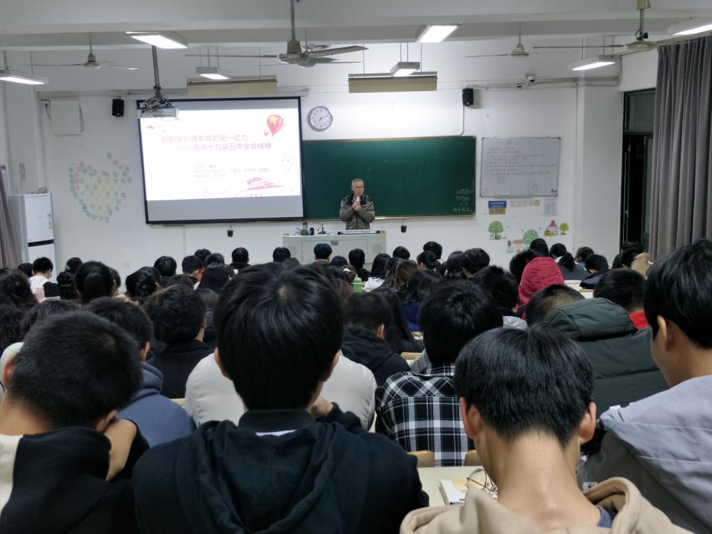 2021年1月6日晚上,習(xí)近平新時(shí)代中國(guó)特色社會(huì)主義思想讀書社宣講團(tuán)在胡濟(jì)林老師組織下,在教學(xué)樓311為20設(shè)備301、302、影像304班舉行“創(chuàng)新是引領(lǐng)發(fā)展的第一動(dòng)力”黨的十九屆五中全會(huì)精神第二次對(duì)外宣講。