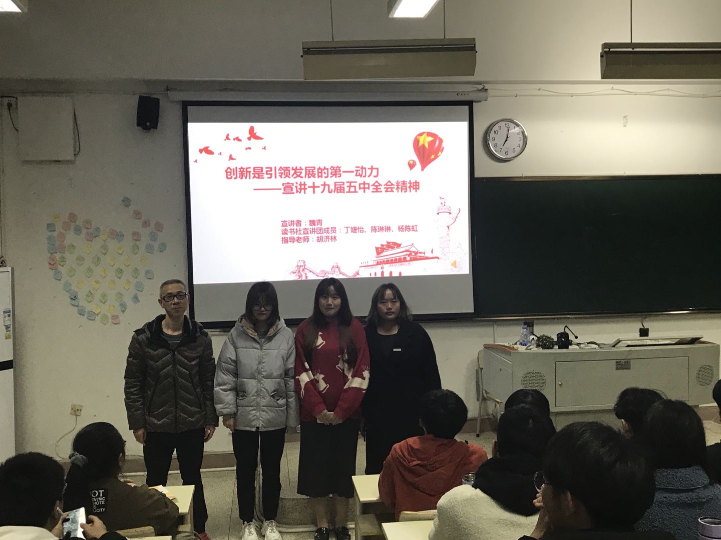 宣講結(jié)束后,胡老師指出,此次宣講有助于更好地解讀黨的十九屆五中全會(huì)精神,貫徹新發(fā)展理念,有助于堅(jiān)定“四個(gè)自信”,為我們偉大的祖國(guó)蒸蒸日上而驕傲自豪。