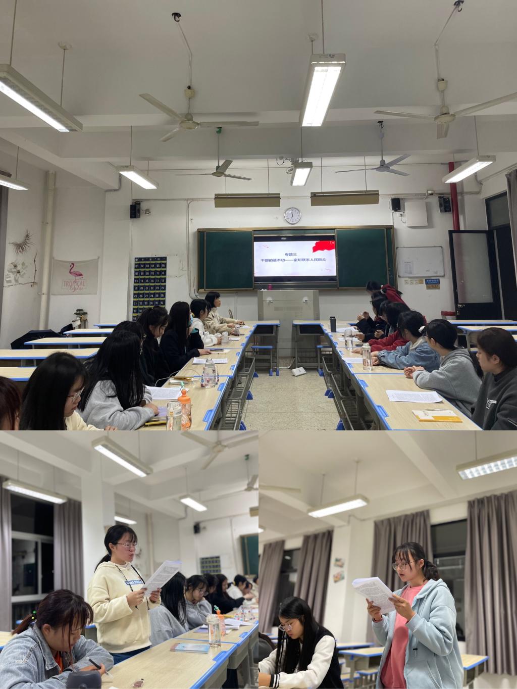 課前,同學們早早就來到班級,將課桌圍成一圈,準備來一場不一樣的討論式學習。首先由鄧薇薇等四位同學帶領(lǐng)大家誦讀原文,鄭冰老師就大家演講時的技巧、神態(tài)、儀表等進行指導。之后,鄭冰老師對”干部的基本功--密切聯(lián)系人民群眾“的內(nèi)容進行講解,讓大家不僅領(lǐng)會了它的主題思想:所謂的干部的基本功--密切聯(lián)系人民群眾最根本的兩點就是:一是黨的領(lǐng)導;二是人民群眾的力量。黨的領(lǐng)導是通過具體的路線方針政策來體現(xiàn)的,而我們的干部是黨的路線方針、政策的具體執(zhí)行者,干部只有到人民群眾中去,并且同人民群眾保持血肉相聯(lián)的關(guān)系,才能使黨的方針政策得到更好貫徹。更讓大家懂得了在今后的生涯中我們要緊跟黨的領(lǐng)導,把心貼近人民,在思想上牢固樹立“一切為了人民、一切依靠人民”的群眾觀點,在任何時候任何情況下,始終堅持與人民同呼吸共命運的立場不能變、全心全意為人民服務(wù)的宗旨。