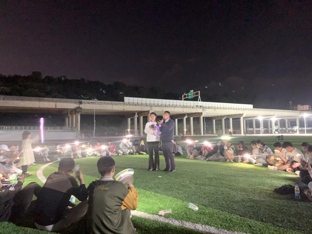 為喜迎中國共產(chǎn)黨成立100周年,2021年4月20日晚,八一學社組織全體社員在學校操場開展文藝獻禮活動。邱萍和張崇飛兩位指導老師參加了本次活動,活動由周曉強和游靜然主持。