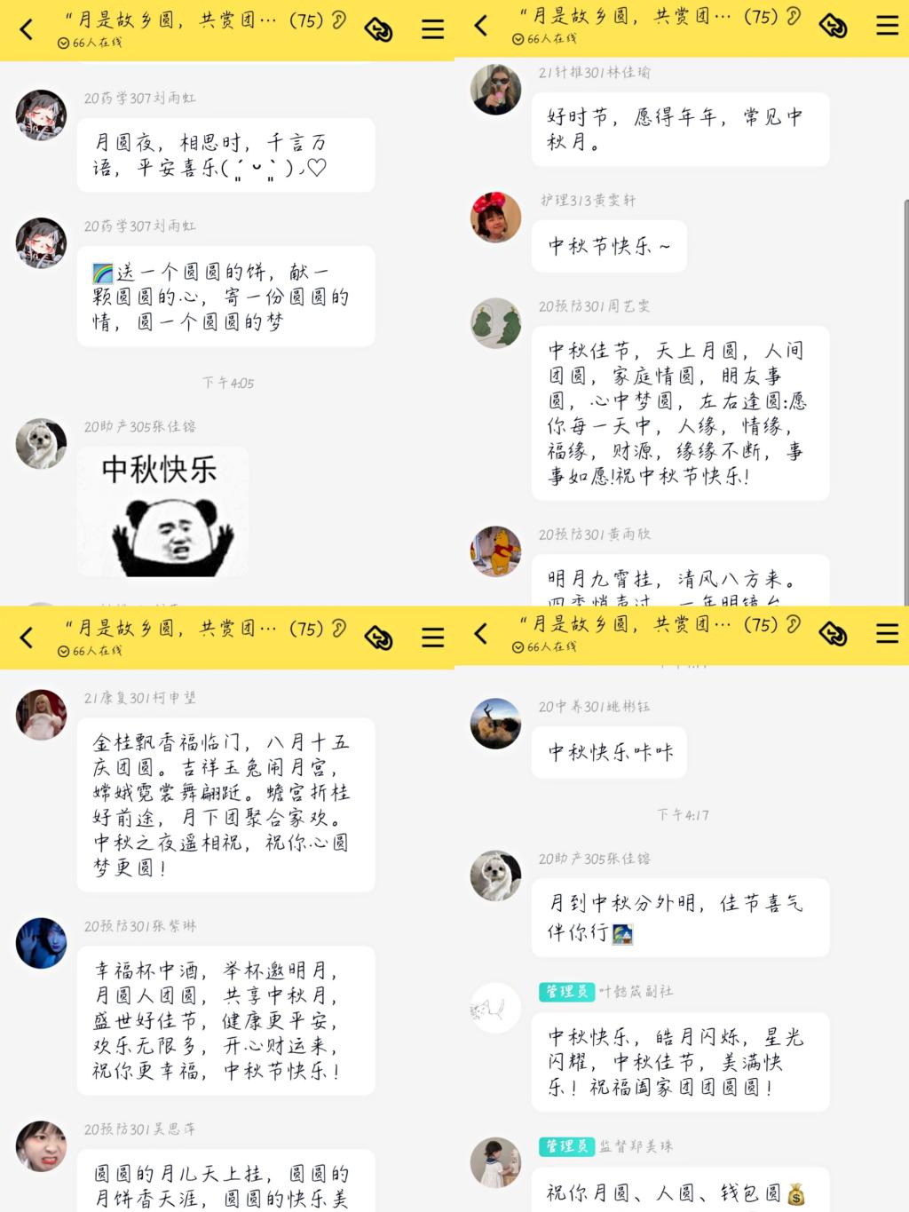 中秋作為我國四大傳統(tǒng)節(jié)日之一,在2006年5月20日被列入首批國家級非物質(zhì)文化遺產(chǎn)名錄,自2008年起被列為國家法定節(jié)假日。為詮釋傳統(tǒng)節(jié)日中秋節(jié)的內(nèi)涵和底蘊(yùn),弘揚(yáng)中國傳統(tǒng)文化,培養(yǎng)愛國情懷。同時為響應(yīng)國家疫情防控政策,讓無法回家團(tuán)圓的同學(xué)們感受校園大家庭的溫暖與親情。傳統(tǒng)節(jié)日研習(xí)社與社團(tuán)部聯(lián)合舉辦了“月是故鄉(xiāng)明,共賞團(tuán)圓月”的線上中秋活動。